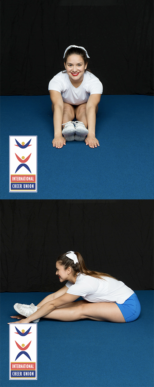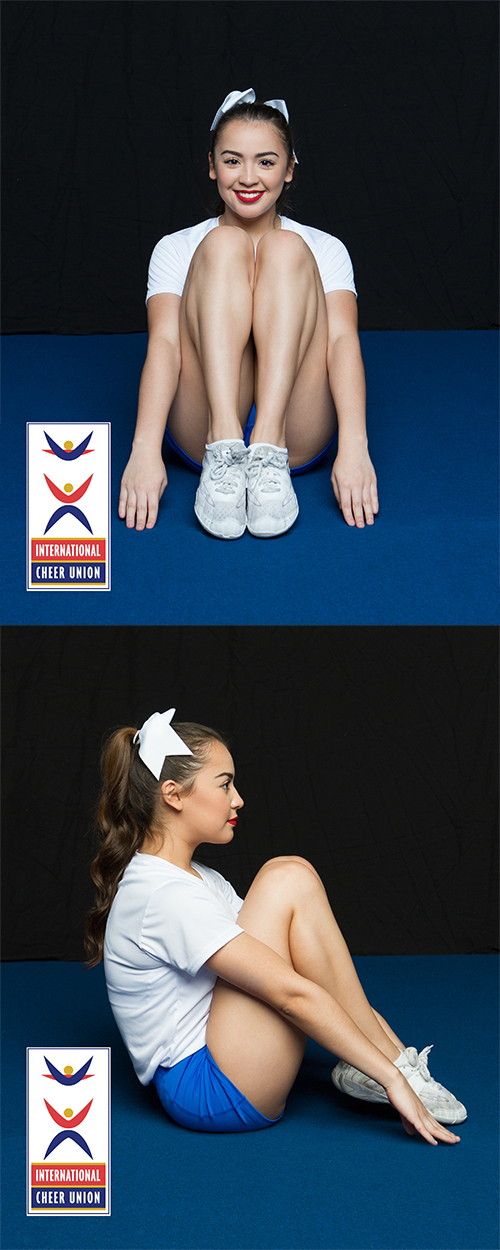 A top person’s body position when sitting in a stunt with straight legs parallel to the performing surface in a “V” position. | |