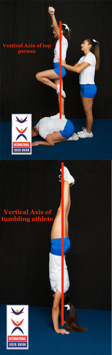 An invisible line drawn from head to toe through the body of the tumbling athlete or top person. | |