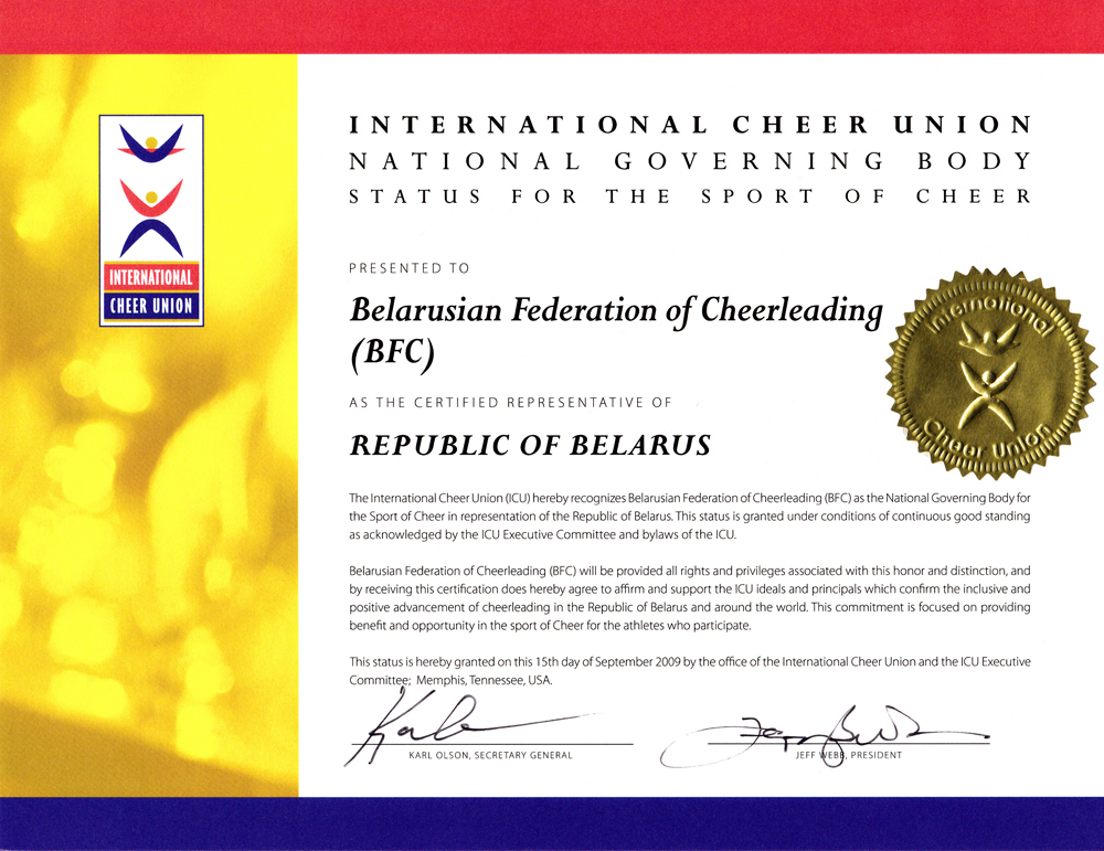 Belarusian Federation of Cheerleading (BFC) 11, Avenue Dzerzhinsky, apt 814 Minsk 220089 Republic of Belarus