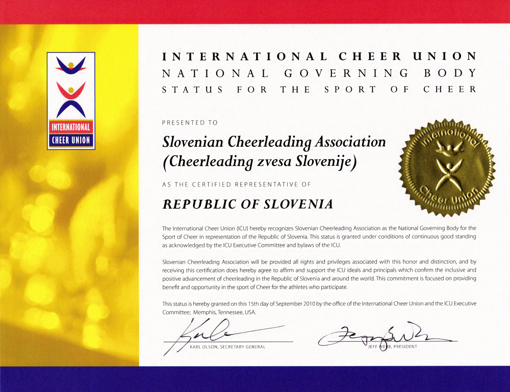 Cheer zveza Slovenije/Slovenian cheer union Letališka cesta 34 1000 Ljubljana Slovenia