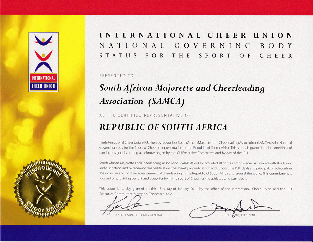 South African Majorette and Cheerleading Association (SAMCA) PO Box 6313 Weltevreden Park Roodepoort, SOUTH AFRICA 1715